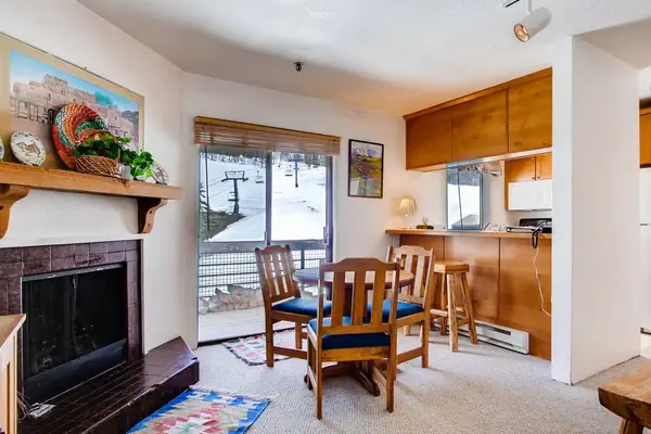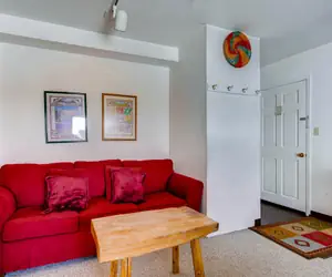 No Cleaning Fee! This quaint, 1BR/1BA condo is ideal for small families, couples, or the solo traveler who enjoys the convenience of ski-in access. Located up three flights of stairs, watch family and friends ski or bike down to the base area from the deck overlooking the slopes. The living room has a magnificent view of the legendary peak of Mt. Crested Butte, looming over the base area slopes. Kick your feet up at the end of a long day and relax while watching the alpenglow illuminate the peak outside your window. Or enjoy your favorite shows, sports or movies on the flat screen TV. The kitchen is cozy, but well-appointed, making it easy to cook any meal. The unit sleeps 4 comfortably as there is also a queen sofa bed located in the living room.