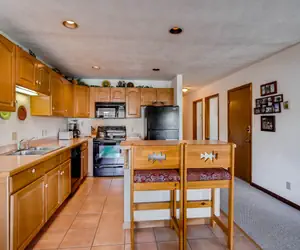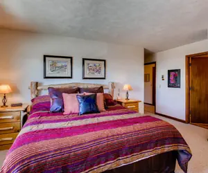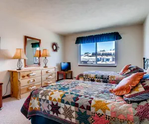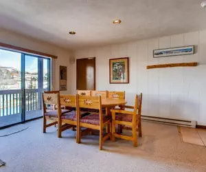 Located just one block from the lifts and free shuttle service into town, these units are very spacious. Each unit has a moss rock fireplace flanked by patio doors that lead out to your deck. An outdoor hot tub and laundry facilities in the building add to your comfort.