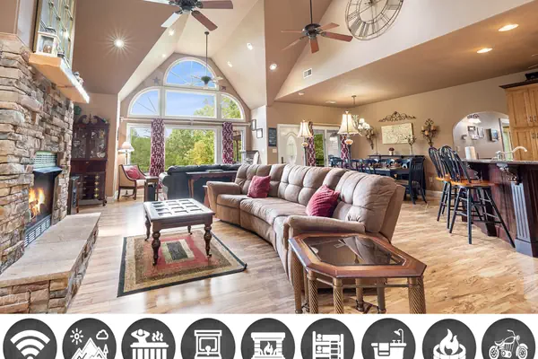 Escape to the serene beauty of the Great Smoky Mountains and discover the magic of Enchanted Primrose, a charming retreat in Sevierville, Tennessee! This stunning 2-bedroom, 2-bathroom retreat sleeps up to 10 guests in comfort and style, making it the perfect choice for families, friends, and special occasions. As you step inside, you'll be greeted by the warm glow of the fireplace and the soothing sounds of nature outside. The spacious great room features plush furnishings, a flat-screen TV, and two comfortable seating areas perfect for relaxing after a day of exploring. WIFI access allows you to stay connected, while the fully-equipped kitchen has all the essentials to make cooking a breeze! Enjoy a soak in the hot tub or gather around the fire pit on cool mountain evenings. This mountain getaway has everything you need to relax with family or friends!