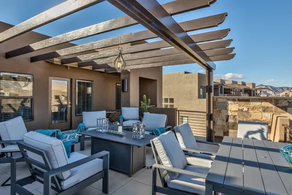 Fun At The Ledges is a spacious 4-bedroom, 4.5-bathroom, 2,692 sq ft villa ideally situated just steps away from the 18th fairway of the Ledges Golf course. This well-designed property boasts a large kitchen and two outdoor living spaces, providing ample room for everyone to enjoy. The main level features the master bedroom and a fantastic, well-equipped kitchen stocked with cooking utensils, making it convenient for guests to dine in during their vacation. Step out onto the lower back patio, complete with a BBQ and outdoor dining area for al fresco meals. Upstairs, there's additional outdoor patio space on the upper balcony, featuring a seating area with lounge chairs to relax and enjoy one of the best views of Snow Canyon at any time of the day.