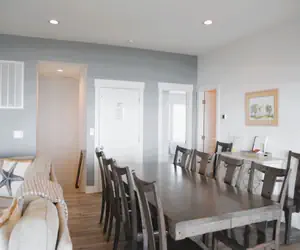 This beautifully appointed home features six bedrooms and five-and-a-half bathrooms and includes an elevator for easy access to all levels. The open-concept living, dining, and kitchen area is tastefully furnished and provides ample space for gathering and relaxation. The gourmet kitchen is well equipped with a gas stovetop, icemaker, and both Keurig and standard coffee makers, making meal preparation effortless. A cozy gas fireplace adds warmth and ambiance, while HD TVs in every bedroom and high-speed internet ensure entertainment and connectivity throughout your stay.