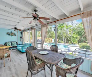 Manatee Manor is a newly remodeled two-bedroom, two-bathroom, pool, and canal front cottage in Anna Maria. Enjoy easy Island life surrounded by tropical landscaping and a sailboat canal. It sleeps up to six guests. Bring your family and enjoy all the amenities Manatee Manor has to offer for time well spent together! Tucked away in a quiet side street on the sought-after North end of the Island you can find relaxation by the beautiful pool area that overlooks the canal. Stroll to the beach and soak up the sun! Return, freshen up and explore Pine Avenue for shopping or eating out, take in the Bay water views and the lights of the Sunshine Skyway at night.HIGHLIGHTS • 1022 sq. ft. • Private pool and spa (12x20 ft.)• Private dock access• Centrally located near Pine Ave• 0.2 miles from bay access • 0.5 miles from beach access BEDROOMS• Sleeps 6• Primary Bedroom: King Ensuite• Second Bedroom: Two Twins• Living Room: Queen Sleeper SofaBATHROOMS• Primary Bathroom: Walk-in Shower• Second Bathroom: Walk-in ShowerEXTERIORThe patio, pool, and canal area include a screened in porch with a large outdoor dining table with seating for 6 in a lush back yard. Enjoy hot days and balmy evenings around the 12 ft. by 20 ft. pool, which has a waterfall and a shallow area. The canal overlooks the treasured mangroves where you can observe several species of wildlife, including nesting birds and fish that jump right out of the water! There is no bridge to get to this canal by boat. If you are interested in fishing off the dock during your visit, a saltwater fishing license would be required if you are over 16 or under 65. To obtain a Fishing License, you may go to local bait and tackle shops, some marinas, or any tax collector office (3340 East Bay Dr Holmes Beach, FL 34217). The pool heat is $150.00 a week. Pool heaters in private homes are locked for your safety and controls must not be tampered with as they are monitored by the pool company. 86° F is the highest heat temperature setting which might not be always reached. Please note if cold days and nights occur, water temperatures will drop and may stay cooler longer. Pool heaters will not operate and will automatically shut down if outside temperatures get too cold. While we take every precaution to ensure that pools are heated as specified, weather conditions may affect the temperature of the pool. Nothing can be done about this issue. Outdoor spas are not hot tubs and require heat at the additional cost. The temperature of a spa is typically set at the same temperature as the pool. In the event of pool equipment malfunction during your stay, Property Manager will expedite repairs as quickly as possible. It may be necessary to close swimming pools for maintenance purposes. No refund or rent adjustment will be made for circumstances beyond our control, malfunctions, or loss of use of equipment or amenities. There are three parking spaces in the driveway. No garage use for guest except laundry facilities accessible via side door.Bicycles are not for guest use.This property welcomes any day arrival for the months mid-August to January except holiday weeks. Please contact us for approval. Please keep in mind that you are vacationing in a residential area. Please be a good neighbor by keeping the noise to a respectful level during the day and night. Excessive and unreasonable noise can deprive neighbors of the peaceful enjoyment of their private property.