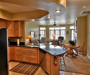 T411A is a beautiful 1 BD/1 BA condo located at Tagalong Golf Resort. It features a full kitchen, living room, jetted tub & stand-up shower, fireplace, and a walk-out patio to Red Cedar Lake.