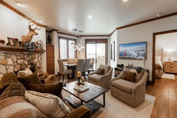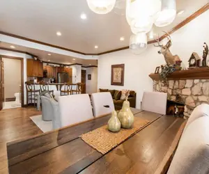 This condo features a large living room , wood fireplace, three bathrooms, deck area with a gas grill, and a master suite with a king size bed. The second room has a king and a twin day bed with trundle(two twins). Also equipped with a full kitchen and in unit washer and dryer. There is an assigned ski locker on the ski access level, free wifi, great views.