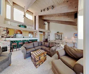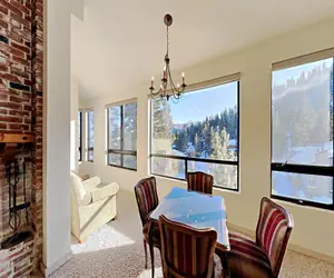 This ELEVATOR-ACCESSIBLE 3BR+loft* includes a 900-square-foot "great room" that is two stories high. The great room is encircled with windows that provide panoramic views of the Sherwin mountain range and surrounding areas, and features a fireplace, 65" TV with HD cable with DVD player and seating for 7 on the comfy couches and chairs. There is formal dining for eight and informal dining at the kitchen counter bar or in the breakfast area in the sunroom. All the bedrooms offer televisions with cable TV.