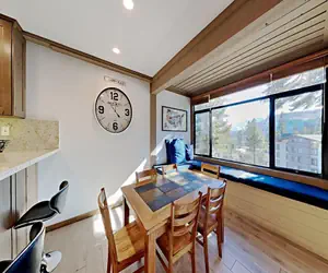 SLOPESIDE LOCATION! This deluxe, gorgeous 2BR/2BA home is a downstairs unit in the Townhomes at Property Manager - JUST STEPS TO MAMMOTH MOUNTAIN! You will fall in love with the amazing mountain views and cozy modern decor in this spacious 1,050-square-foot mountain home. Your family and friends will be THRILLED with the easy access to skiing, snowboarding, and mountain biking at Mammoth Mountain, 3 spas/pool/sauna, and free bus, PLUS the elevated guest benefits of an this Property Manager. Take the free (seasonal) Village Gondola to the Village at Mammoth for your morning coffee or lunch. Or relax in your home and brew your own coffee and cook meals with your friends and family. This fully furnished condo features a full kitchen, dining room, and living room, offering plenty of room to relax, renew, and reconnect.