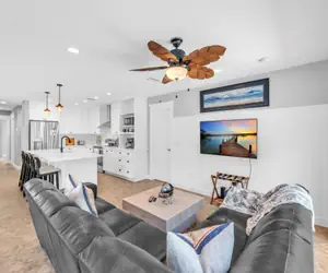 Welcome back to Sapphire Beach House! Casual yet luxurious, this three-bedroom duplex with a private, heated pool and close proximity to the beach is the perfect choice for vacationers to relax and unwind when visiting Anna Maria Island. Your favorite dog is also invited for a small pet fee (30 lbs. max, please!). Sapphire Beach House is located two blocks from the powdery sand on Holmes Beach - so close you'll never miss a sunset. Just take a short stroll to the beach and bask in the warm Florida sunshine, then refresh yourself in the crisp Gulf waters.HIGHLIGHTS • 1552 sq. ft. • Private pool (20x14 ft)• Centrally located near Holmes Beach Boat Ramp• 0.3 miles from bay access • 0.3 miles from beach access BEDROOMS• Sleeps 6• Primary Bedroom: King Ensuite• Second Bedroom: King• Third Bedroom: Two TwinsBATHROOMS• Primary Bathroom: Walk-in Shower• Second Bathroom: Walk-in Shower EXTERIORSlip into ultimate relaxation by your sparkling private saltwater pool where the patio is furnished with lounge chairs. You will appreciate the partially covered dining area and a gas grill for that Florida lifestyle. Enjoy the rectangular shaped, 14 ft by 20 ft heated pool in a tropical setting. There is plenty of chairs and sun loungers to make it a perfect day in the sun!The pool heat is $150.00 a week. Pool heaters in private homes are locked for your safety and controls must not be tampered with as they are monitored by the pool company. 86° F is the highest heat temperature setting which might not be always reached. Please note if cold days and nights occur, water temperatures will drop and may stay cooler longer. Pool heaters will not operate and will automatically shut down if outside temperatures get too cold. While we take every precaution to ensure that pools are heated as specified, weather conditions may affect the temperature of the pool. Nothing can be done about this issue. Outdoor spas are not hot tubs and require heat at the additional cost. The temperature of a spa is typically set at the same temperature as the pool. In the event of pool equipment malfunction during your stay, Property Manager will expedite repairs as quickly as possible. It may be necessary to close swimming pools for maintenance purposes. No refund or rent adjustment will be made for circumstances beyond our control, malfunctions, or loss of use of equipment or amenities. Minimum stay: 7 nights and Maximum occupancy: 6 peoplePark in the three-car driveway and discover your surroundings with a bike ride or rely on the free trolley to explore the seven-mile island. Fish off the Rod & Reel Pier, browse Pine Avenue's fabulous boutiques and galleries and enjoy a variety of laid-back dining options.This property requires weekly rentals with Saturday dates. Please inquire for any other dates.Please keep in mind that you are vacationing in a residential area. Please be a good neighbor by keeping the noise to a respectful level during the day and night. Excessive and unreasonable noise can deprive neighbors of the peaceful enjoyment of their private property. VRC19-000154
