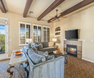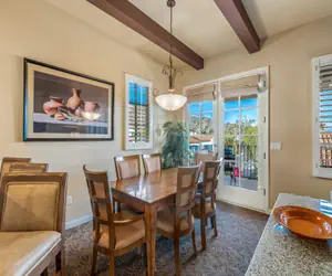 State of the art construction and amenities, channeling the original aura of this mystical locale. The one and two-story Spanish Hacienda-style villas, with sloping red-tiled roofs hanging over whitewashed plaster walls are luxuriously furnished in early California decor, and boast 10ft. wood-beamed ceilings and 1700 square feet of space, providing the getaway seeker plenty of room to stretch out for a day, a week or a month. Soaking tubs, Wall-mounted flat screen T.V., Kohler fixtures, maple wood cabinetry, dream-sleep mattresses, designer sheets and towels, granite counters and stone tile floors all add to the opulent spa-like ambiance. The fully amenitized chef's kitchen and open floor plan are perfect for entertaining groups, and all balconies and patios feature private electric grills and patio tables to enjoy cooking and dining outdoors.