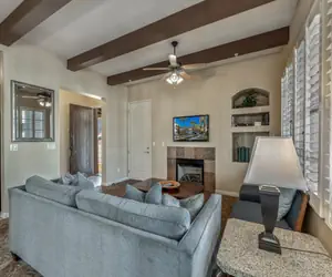 State of the art construction and amenities, channeling the original aura of this mystical locale. The one and two-story Spanish Hacienda-style villas, with sloping red-tiled roofs hanging over whitewashed plaster walls are luxuriously furnished in early California decor, and boast 10ft. wood-beamed ceilings and 1700 square feet of space, providing the getaway seeker plenty of room to stretch out for a day, a week or a month. Soaking tubs, Wall-mounted flat screen T.V., Kohler fixtures, maple wood cabinetry, dream-sleep mattresses, designer sheets and towels, granite counters and stone tile floors all add to the opulent spa-like ambiance. The fully amenitized chef's kitchen and open floor plan are perfect for entertaining groups, and all balconies and patios feature private electric grills and patio tables to enjoy cooking and dining outdoors.