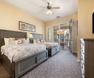 For those able to pry themselves from the villa, the swimming options abound with 12 private salt water pools and 11 relaxing Jacuzzis, including dedicated lap pool, tranquil adult pool, and the ultimate family pool and play area with its beach-like entry, plus splash fountains and resort cabanas (free of charge). The inviting hammock garden, outdoor fireside lounge area, poolside Cafe, game room, and state of the art fitness facility round out the spectacular 10,000 sq.ft. Clubhouse at the heart of the resort.