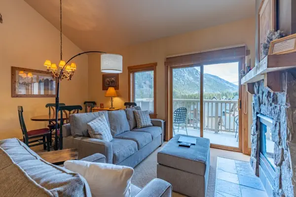 This top floor 2-bedroom unit in River Run Village has astounding views, great amenities, and is conveniently located right next to the gondola, making this condo perfect for a family ski vacation. The living room features comfortable furnishings in front of a flat-screen TV and fireplace. Just off of the living room, enjoy the stunning view of surrounding mountain ranges on the deck. In the kitchen you will find everything you need to make home-cooked meals featuring stainless steel appliances. The dining table can seat 4 people comfortably with an additional 2 seats at the breakfast bar.
