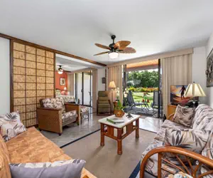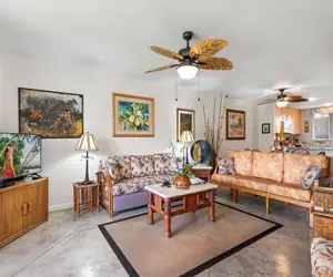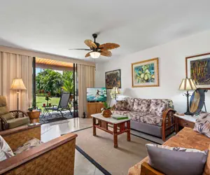Honu Hale (turtle house) is our dream come true & could be your dream vacation home when you stay. Located in a prime area at the gated Keauhou Kona Surf and Racquet Club, this first floor 2 BD, 2 BA is spacious & recently decorated to reflect artist owners with Hawaiian decor. No lugging heavy suitcases or bags of groceries up flights of stairs. Your reserved parking spot is right in front of the building and just a few steps away. Magnificent views are offered from your private large lanai of the Kona Country Club, which is open to the public, and a large grassy area for family fun.