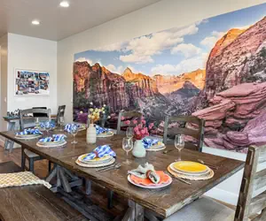At the end of a long day, unwind with a drink and savor the beauty of the desert night sky while overlooking Snow Canyon from our rooftop patio with resort-style furniture. This 4-bedroom, 4.5-bath, 1,932 sq ft luxury villa includes a private hot tub and offers plenty of space for relaxation and sharing adventures with family and friends.