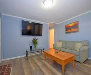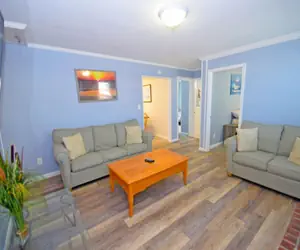 • Inside, you'll love the comfort of the large living room, complete with unit air conditioning, streaming TV, and free WiFi to keep you connected. And with pets welcome for a small fee, you won't have to leave your furry friend behind!