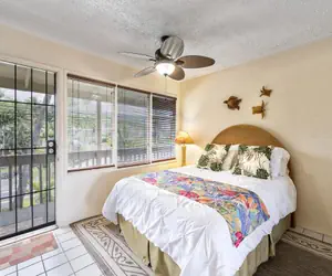 The Kona Shores condominium complex has an ocean-front pool with a cabana, two bathrooms and a charcoal grill for barbecuing.