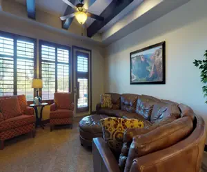 Welcome to Kolob, a luxurious 2,733 sq. ft. vacation home located in the scenic Coral Ridge Community of St. George, Utah. Inspired by the stunning Kolob Canyons of Zion National Park, this 3-bedroom, 3.5-bathroom home offers beautiful views of a fishing pond and the Southern Utah mountains. Just 32 miles from Zion National Park, Kolob is the perfect base for your outdoor adventures.