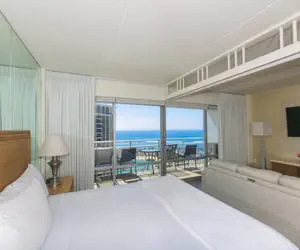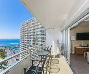 Come and relax in this renovated unit at the Ilikai Hotel. This spacious 1-bedroom condo has been making updates to make the space more comfortable and relaxing for travelers! This condo can comfortably sleep 4, with a California King bed and sofa sleeper in the living area. The kitchen is fully equipped, included an airfyer! BONUS: Enjoy the Friday night fireworks off the lagoon from the comfort of your lanai. The condo is equipped to make this your perfect home away from home!