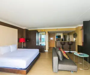 The property features two inviting pools: a spacious swimming pool on the lobby level and a serene lounge pool on the second floor. For added convenience, self-service, card-operated laundry facilities are available on each floor. Enjoy peace of mind with 24/7 security and take advantage of valet parking for $45 per day (rates subject to change). Please note that gym access is exclusive to hotel guests.