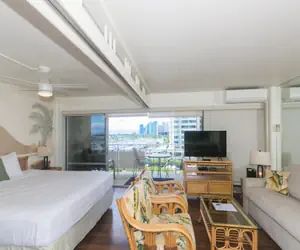 This condo is located on the 6th floor of the Ilikai Hotel. Just a quick walk away, is Hilton Hawaiian Village with fireworks every Friday evening. The Duke Kahanamoku Lagoon is nearby and perfect for the little ones to play & for you to sun bathe. You'll be happy to have chosen this condo as everyday & night you'll often see fantastic rainbows and glorious sunsets from the lanai.