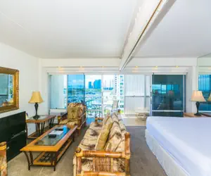 This spacious condo is located on the 7th floor of the Ilikai Hotel. Enjoy the coveted yacht harbor view and the Hawaiian breeze from your spacious lanai!