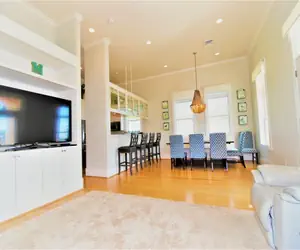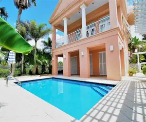 Inside, the house is bright and airy with Carrara marble countertops, hardwood floors, and quality furnishings throughout. The gourmet kitchen, complete with high-end appliances, makes it easy to whip up meals with spacious living and dining areas. The master suite features a private balcony overlooking the Backyard and Pool. Upstairs, a sunlit sitting area surrounded by windows provides stunning Views of the Beach, Bay, and Neighborhood, perfect for relaxing . The first floor includes a bedroom with Garage Access and a direct path to the backyard, Pool, and Hot Tub.