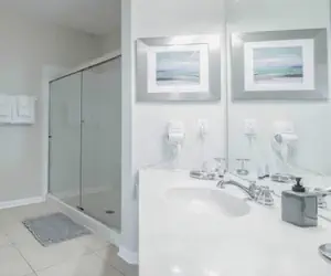 The master bedroom has a pillow-top king mattress with en-suite bathroom with a large walk in shower. The 2 guest bedrooms both have pillow-top queens. All bedrooms have smart flat-screen TVs.