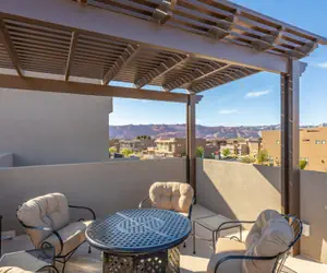 Whether you're seeking relaxation or planning to immerse yourself in the surrounding landscapes, find comfort in the contemporary-style bedrooms, covered rooftop patio, or spend quality time with family and friends in the spacious family room.