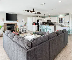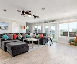 Very spacious, pet friendly home located in the Sandpiper Subdivision! With colorful, attractive décor and a relaxed atmosphere, this Crystal Beach rental property provides the ideal setting for your beach vacation. The main level features an open floor plan with cool tile and laminate floors, a large kitchen with granite countertops and an island with plenty of room for preparing meals or serving your fresh gulf seafood, buffet-style. One king bedroom and one bathroom are located on the main level. The upper level consists of a bedroom with a King and Full bed and the second spacious king bedroom, bathroom, and deck access – perfect for stealing away for some quiet time. 3rd level has loft area with 2 sets of bunk beds (2 fulls/2 twins)The main deck features covered and open areas. When you're ready to get some sand between your toes, the beach is only minutes away!
