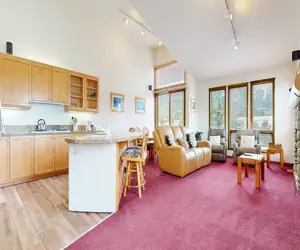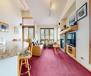 Enjoy endless Mammoth Mountain views from this 3 bedroom, 3 bathroom townhome situated in the highly sought after Snowcreek Phase 5 community! Relax in the comfort of a cozy gas fireplace and flatscreen TV with Roku and Cable, or barbecue on the balcony and entertain in the open floor plan of the kitchen area while soaking in the breathtaking mountain views that your friends and family will be swooning over. The home features a master suite both upstairs and downstairs with King beds, private bathrooms and flatscreen TVs, the upstairs bedroom even has a work desk (if you must while on vacation). The third bedroom features a Queen bed also with flatscreen TV. The living room upstairs has a dining area for 8 guests, and extra seating at the kitchen bar. Additional amenities include free WiFi, private washer/dryer in the laundry room, private 1-car garage, and feel free to bring Fido along to enjoy the great outdoors as this townhome is also pet-friendly (one pet allowed under 25 pounds)! This condo is located directly next to the community hot tub so you don't need to walk far for a soak. This unit sleeps a maximum of 6 people, as 2 levels inside and approximately 6 steps to enter (garage entrance at ground level). All Mammoth Sierra Reservations guests receive complimentary full access to Snowcreek Athletic Club to enjoy facilities including indoor heated pool, steam/sauna, full fitness facility, yoga, pilates and cycle studio and more. Guests will be provided two parking passes, 1 vehicle can park in the private garage, 1 in the driveway and there is guest overflow parking very close by next to the hot tub. If more parking is required than what is allotted, feel free to call our office for alternative options. Our calendar is updated in real time.(Property Certification #: TOML-CPAN-13188) Unit Code = SNC0999