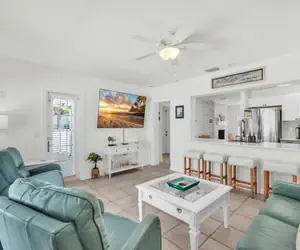 Welcome to Sand N Suds! On the city line of Holmes Beach and the city of Anna Maria and a short walk to the beach, this newly renovated and furnished three-bedroom, three-bathroom cottage home is situated on a spacious corner lot surrounded by lush tropical landscapes for a great deal of privacy. Sand N Suds uses the White Avenue beach access. White Avenue is considered a 'north end beach.' There are plenty of beach items and a cart to make the day at the beach a fun filled adventure! The fireplace is decorative only and not for guest use. HIGHLIGHTS • 1552 sq. ft. • Private heated pool 24x11'• Centrally located near White Ave Beach • 0.3 miles from bay access • 0.1 miles from beach access BEDROOMS• Sleeps 6• Primary Bedroom: King• Second Bedroom: Queen • Third Bedroom: Two Twins BATHROOMS• Primary Bathroom: Walk-in Shower • Second Bathroom: Tub/Shower Combo • Third Bathroom: Walk-in ShowerEXTERIORThe pool heat is $150.00 a week. Pool heaters in private homes are locked for your safety and controls must not be tampered with as they are monitored by the pool company. 86° F is the highest heat temperature setting which might not be always reached. Please note if cold days and nights occur, water temperatures will drop and may stay cooler longer. Pool heaters will not operate and will automatically shut down if outside temperatures get too cold. While we take every precaution to ensure that pools are heated as specified, weather conditions may affect the temperature of the pool. Nothing can be done about this issue. Outdoor spas are not hot tubs and require heat at the additional cost. The temperature of a spa is typically set at the same temperature as the pool. In the event of pool equipment malfunction during your stay, Property Manager will expedite repairs as quickly as possible. It may be necessary to close swimming pools for maintenance purposes. No refund or rent adjustment will be made for circumstances beyond our control, malfunctions, or loss of use of equipment or amenities. Minimum stay: 7 nights and Maximum occupancy: 6 peopleThere are three parking spaces reserved for use during your stay at Sand N Suds. Please keep in mind that you are vacationing in a residential area. Please be a good neighbor by keeping the noise to a respectful level during the day and night. Excessive and unreasonable noise can deprive neighbors of the peaceful enjoyment of their private property. VRC19-000137