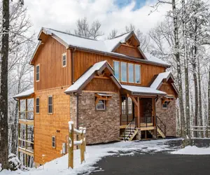 Iron Mountain Lodge offers the ultimate in high-end, luxury cabin vacationing. This 4000sq ft custom built cabin features 4 bedrooms, 4 Full Master Bathrooms, Theater Room, Game Room, full kitchen open to dining and living areas, large decks, and sleeps 12 guests comfortably. It is conveniently located 15 minutes to the Parkway in Pigeon Forge and all its attractions.