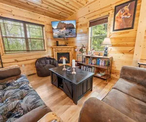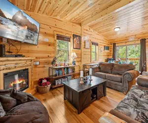 Escape to the tranquility of the Great Smoky Mountains and experience the warmth and charm of Fox's Den, a cozy 2-bedroom, 2-bathroom cabin retreat that sleeps up to 7 guests and is nestled among the trees, offering peaceful views of wooded surroundings! As you step inside, you'll be greeted by the inviting ambiance of the living room, complete with an electric fireplace and a comfortable seating area that is perfect for curling up with a good book or enjoying quality time with loved ones. The fully-equipped kitchen has everything you need to whip up a hearty meal or snacks. Fox's Den is more than just a place to rest your head - it's an outdoor enthusiast's paradise! Take advantage of the hot tub on the private deck, which is perfect for soaking away any stress after a long day of exploring, or enjoy the deck table seating and take in the peaceful surroundings. When you're ready to venture out, you'll be just a short drive from all the attractions and activities Pigeon Forge and Gatlinburg offer. This is the perfect retreat for families and friends looking for a relaxing getaway in the beautiful Smoky Mountains and making memories that will last a lifetime!