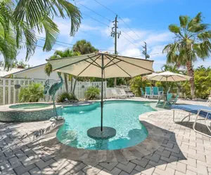 Welcome to Beach N Bay 206! Pool COOLING for hot summer days!A honeymooners delight or a couple’s retreat! Enjoy a romantic getaway! Don't miss your chance to stay at the North end of Anna Maria Island in the highly desirable village of Anna Maria, one of Coastal Living Magazine's Top 10 Happiest Seaside Towns! Located right in the middle of all that happiness, Beach N Bay is the island vacation cottage duplex that's so tropical and fun, you'll swear you can hear steel drums! Ideally situated at the corner of Spring and Crescent Avenues, it's right in the middle of everything the village of Anna Maria has to offer. HIGHLIGHTS • Private pool/spa (21x12 ft)• Pool COOLING for hot summer days!• 832 sq ft. • 171 sq ft. of screened in patio• Centrally located near Pine Avenue• 0.3 miles from bay access • 0.3 miles from beach access BEDROOMS• Sleeps 4• Primary Bedroom: King • Second Bedroom: Two TwinsBATHROOM• Primary Bathroom: Walk-in ShowerEXTERIORThe 21' x 12' pool is private for this side of the duplex. It is being heated and cooled to the perfect temperature all year round at a cost of $150.00 per week. Please no smoking inside, in the lanai, or by the pool area. This is a smoke free property! There is a designated smoking area by the fire pit in front of the house. If you like hanging out under the sun and stars when you're in Florida, Beach N Bay will be the perfect place to call home! Be sure to pack your mini drink umbrellas because you'll want to jump right in the pool, tropical drink in hand, and soak up the Anna Maria sunshine! This fantastic, private saltwater pool isn't just heated for wintertime enjoyment, it's one of only a handful of pools on the Island that are cooled for those hot summer months! At one end you'll find a tanning ledge, designed for sunbathing with your toes in the water - also a great place to supervise little ones. On the other end you'll find a swim-up bar table and stools, as well as a spa. Lovely bronze herons serve as deck jets, shooting water into the pool. Your outdoor amenities are rounded out with a big grill that offers options for smoking, as well as cooking with gas or with charcoal. There's also a drink cooler, a firepit surrounded by Adirondack chairs, an outdoor shower, and a screened porch with flat panel TV. The weekly pool heat/cool fee is $150.00. Pool heaters in private homes are locked for your safety and controls must not be tampered with as they are monitored by the pool company. 86° F is the highest heat temperature setting which might not be always reached. Please note if cold days and nights occur, water temperatures will drop and may stay cooler longer. Pool heaters will not operate and will automatically shut down if outside temperatures get too cold. While we take every precaution to ensure that pools are heated as specified, weather conditions may affect the temperature of the pool. Nothing can be done about this issue. Outdoor spas are not hot tubs and require heat at the additional cost. The temperature of a spa is typically set at the same temperature as the pool. In the event of pool equipment malfunction during your stay, Property Manager will expedite repairs as quickly as possible. It may be necessary to close swimming pools for maintenance purposes. No refund or rent adjustment will be made for circumstances beyond our control, malfunctions, or loss of use of equipment or amenities.PET POLICYBeach N Bay 206 is a pet friendly property for a maximum of 2 dogs up to 50 lbs. The non-refundable pet fee is $150.00 per pet per stay and will be charged for each week. Short stays are not prorated. The pet fee does not cover any damage caused by the pet. Due to property insurance policies and liability concerns, the following breeds or crossbreeds are not permitted:• Pit Bull• Akita• Rottweiler• German Shepherd• Siberian Husky• Malamute• Doberman Pinscher• Chows• Any Wolf-dog hybrid• Any dog with biting historyRent the other side of this duplex to accommodate up to 8 people under one roof! Call for occupancy details.Beach N Bay 206 has two parking spots reserved for guests. Please keep in mind that you are vacationing in a residential area. Please be a good neighbor by keeping the noise to a respectful level during the day and night. Excessive and unreasonable noise can deprive neighbors of the peaceful enjoyment of their private property.