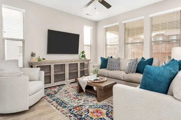 This beautiful St. George Vacation Home also features two family rooms. The main level family room features a large sofa, flat-screen TV.
