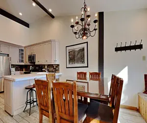 SLOPESIDE LOCATION! This deluxe 3BR/3BA home is an upstairs unit in the Townhomes at Property Manager - JUST STEPS TO MAMMOTH MOUNTAIN! This home has a beautiful kitchen with amazing countertops, stainless steel appliances, and a spacious 1,400-square-foot open layout that is perfect for large families. Your family and friends will LOVE the easy access to skiing, snowboarding, and mountain biking at Mammoth Mountain, 3 spas/pool/sauna, and free bus, PLUS the elevated guest benefits of an this Property Manager. Take the free (seasonal) Village Gondola to the Village at Mammoth for your morning coffee or lunch. Or relax in your home and brew your own coffee and cook meals with your friends and family. This fully furnished condo features a full kitchen, dining room, and living room, offering plenty of room to relax, renew, and reconnect.