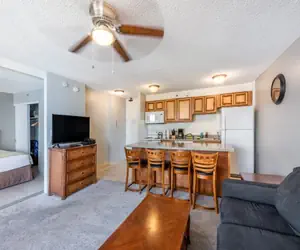 This unit has a comfortable bedroom with 2 Queen Sized Beds and a picture-perfect view of the rolling waves. The bedroom can be made private by the sliding partition doors or left open for a very free flow room. A comfy sofa sleeper is built into the living room, so if you need extra beds, we've got you covered. The bathroom right off the bedroom has a closed off private toilet and a great shower/bath with a detachable shower head. This bathroom is the perfect place to wash away all the sand and stress after a day spent at the beach!