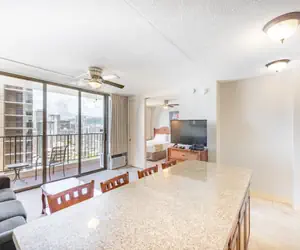 Most of our condos at Property Manager are located in the luxurious Waikiki Banyan, an ideal spot for any occasion in Hawai'i. Just a block from the famous Waikiki Beach, you can easily enjoy dipping your toes in the soothing ocean water, surfing, swimming, scuba diving, hula dancing, and exploring Hawaiian nightlife. The Waikiki Banyan is also close to top-notch dining options and shopping centers like the International Marketplace and Royal Hawaiian Shopping Center. For family fun, the Zoo and Aquarium are just around the corner, and public transportation is readily available for exploring Honolulu, conveniently located just outside the building.