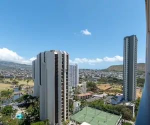 Most of our condos at Property Manager are located in the luxurious Waikiki Banyan, an ideal spot for any occasion in Hawai'i. Just a block from the famous Waikiki Beach, you can easily enjoy dipping your toes in the soothing ocean water, surfing, swimming, scuba diving, hula dancing, and exploring Hawaiian nightlife. The Waikiki Banyan is also close to top-notch dining options and shopping centers like the International Marketplace and Royal Hawaiian Shopping Center. For family fun, the Zoo and Aquarium are just around the corner, and public transportation is readily available for exploring Honolulu, conveniently located just outside the building.