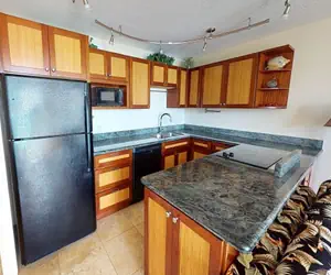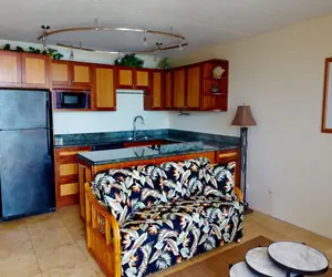Save money and enjoy the convenience of a fully-equipped kitchen and comfortable seating in the living room. Kitchen includes refrigerator, range, microwave, rice maker, coffee maker, and other kitchen wares. Plus, this unit has a dishwasher because, after all, you are on vacation! There is a glass kitchen table with seating for four people.
