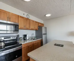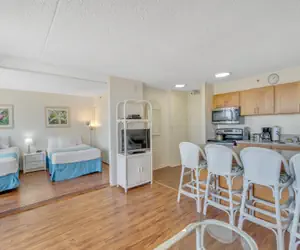 This condo comes with a complete kitchen including a refrigerator, stove-range, microwave, rice maker, coffee maker, and all the kitchen supplies you will need to have an at home cooking experience during your stay.