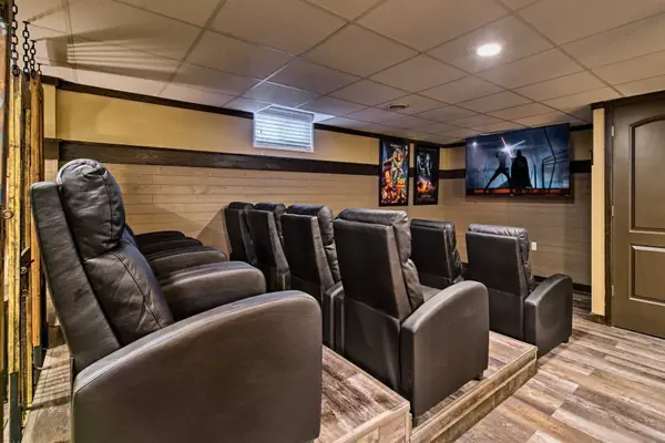 Prepare for heaps of fun and laughter! Challenge your pals to a showdown in the game room with foosball, pool, or air hockey, or hunker down in the theater room for a movie night that'll have you hollerin' for more. The kitchen is a cook's paradise, featuring stainless steel appliances and granite countertops—perfect for whipping up a feast that'll make your taste buds do a jig.