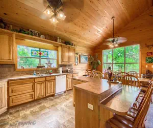 Home is fully furnished with a huge open kitchen/dining/living room which include many extra amenities A great place to gather and relax after a full day on the river!! The kitchen has everything! Fully equipped and then some including a Keurig 12 cup & K cup combo coffee maker. Owners have provided a child's highchair and Pac N Pay for convenience. Dining room table seats 8 and there are 5 additional bar stools at the kitchen island/ breakfast bar. The living room has a leather sofa, a love seat with ottoman and a twin over twin trundle bed. There is an electric fire place, streaming TV and WiFi that was updated March of 2024 and is much stronger now! Cell Phone Service is very spotty in this area. No refunds/cancellations for outages. Firepit (bring your own wood) and corn hole onsite to use as well!