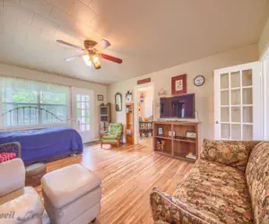 Step inside the cottage into the sun room with a dining table that seat 6 and has 2 twin trundles (sleeps 4). The cozy living room has a new sofa and 3 chairs as well as a twin trundle (sleeps 2). Fully equipped kitchen with all the comforts of home including a Keurig 12 cup & K cup combo coffee maker. There is a dining table in kitchen seating 4. The master bedroom has a king bed and a full bed (sleeps 4). This home has one full bathroom with a deep shower tub combo. Owners have provided a child's highchair and Pac N Pay for convenience. This home has streaming TV and WiFi that was updated March of 2024 and is much stronger now! Cell Phone Service is very spotty in this area. No refunds/cancellations for outages. Firepit (bring your own wood) and corn hole onsite to use as well!