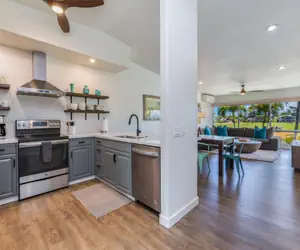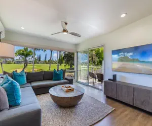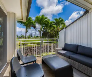 Emmalani Court is a hidden gem in Princeville on the North Shore of Kauai. It is only 42 units and adjacent to the 8th hole of the top rated Robert Trent Jones Jr designed Makai golf course. This well maintained complex is located within walking distance to the Princeville Resort, Pali Ke Kua beach, Hideaways, Queens Bath, golf, tennis, and the many restaurants in Princeville. Watch the incredible sunsets from the point of the property or a bbq at the pool.. The picturesque town of Hanalei Bay and its famous beach and world class surfing is a short drive away.