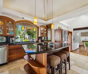 Stylishly decorated and perched cliffside with lush valley views, this 1,989 sq. ft home in Princeville on Kauai's North Shore is a gem and offers the best of all worlds. Refinished hardwood floors, floor-to-ceiling windows and a cultured decor throughout this split-level home promise a comfortable environment to unwind and enjoy this tropical paradise.