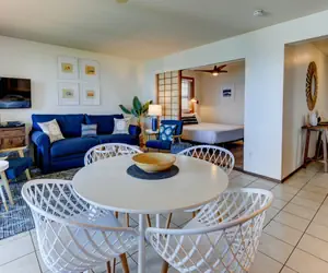 Part of the intimate Poipu Palms condo community, this tropical property stuns with incredible ocean views. Out on the private lanai, gather with your ohana to sip on a cool drink and let the ocean breezes lull you into complete relaxation mode.