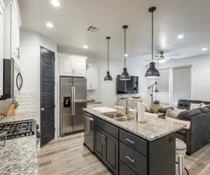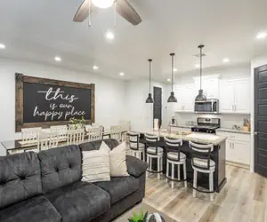Our Happy Place is a 4-bedroom, 4.5-bathroom (4th bedroom is an unenclosed loft), 1,932 sq ft luxury villa furnished with all the upgrades you could ask for, including flat-screen HDTV's, granite countertops, as well as stainless steel appliances. The floor plan is spacious with bedrooms that are quiet and private. Whether you're looking to relax or spend your day enjoying the surrounding landscapes, you can rest comfortably in the contemporary-style bedrooms, partially covered outdoor patio, or spend time with family and friends in our large family room.