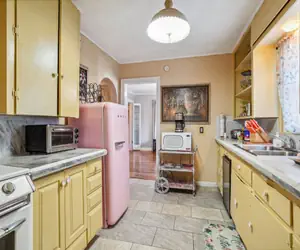 This 110-year-old cottage-style wood-framed home has been renovated to preserve the charm of its era. The home is filled with old and new, beautiful and unique décor and furnishings. Experience a step back in time with this home’s original wood floors, 1950's Wedgewood stove, and retro 1950's pink refrigerator, and much more.