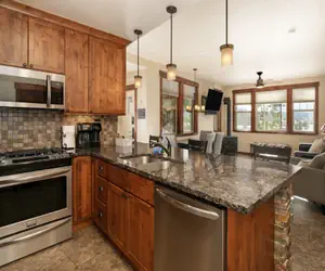 After a day of thrilling alpine adventures, cozy up on the plush sofa by the gas fireplace and large smart TV. Please note, this unit does not offer garage parking, but you will find ample outdoor spaces are available for your convenience.