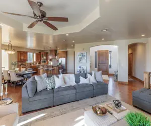 Step into a world of luxury and leisure as the spacious and open floor plan seamlessly connects elegant spaces, creating an ambiance of grandeur for every gathering. The bedrooms are designed as peaceful sanctuaries, ensuring a restful retreat for all occupants. Enjoy the outdoors on the covered patios, one on the Main Floor and another on the Walkout Basement level, providing a perfect setting for alfresco dining under the vast Utah skies with the convenience of a gas grill.